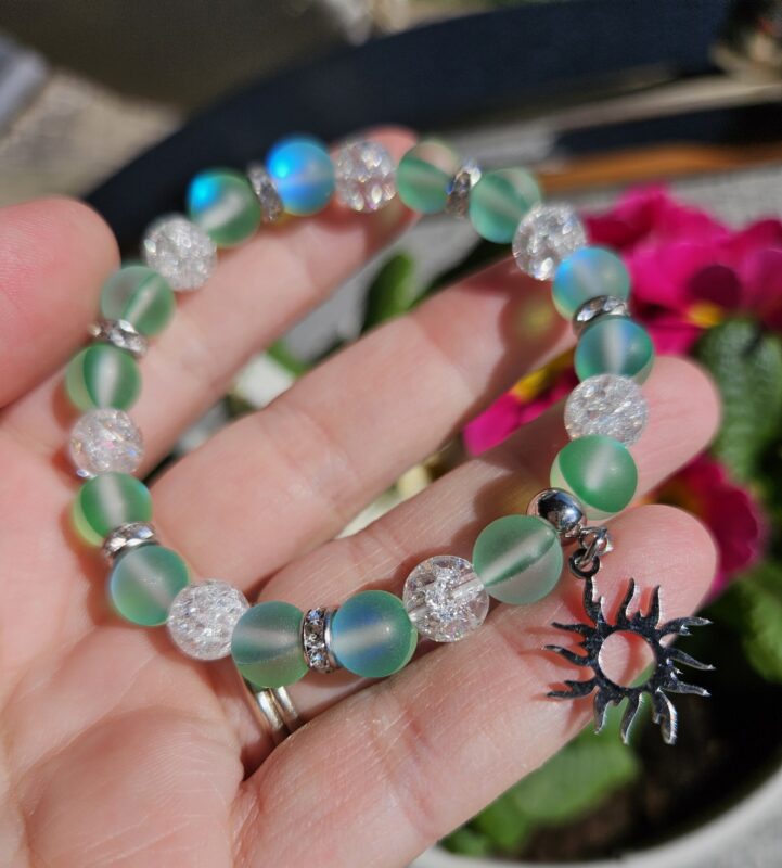 Aqua Aura zelená + Krištáľ máramok 8mm Slniečko