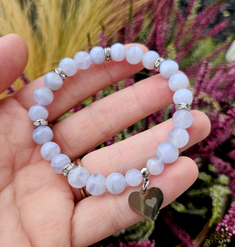 Chalcedón modrý náramok 8mm SRDIEČKO