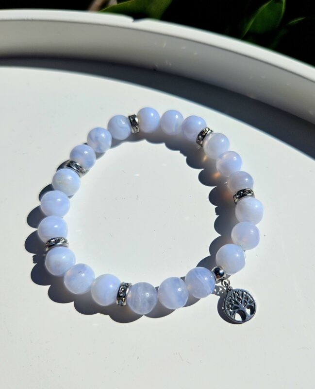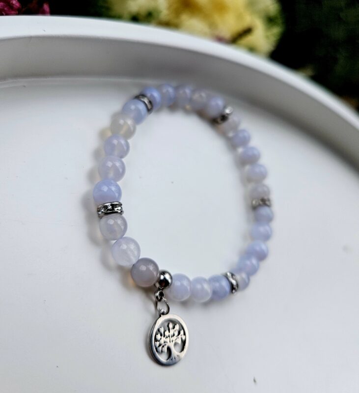 Pre zmenu veľkosti uveďte požiadavku do poznámky Chalcedón modrý náramok 8mm STROM ŽIVOTA