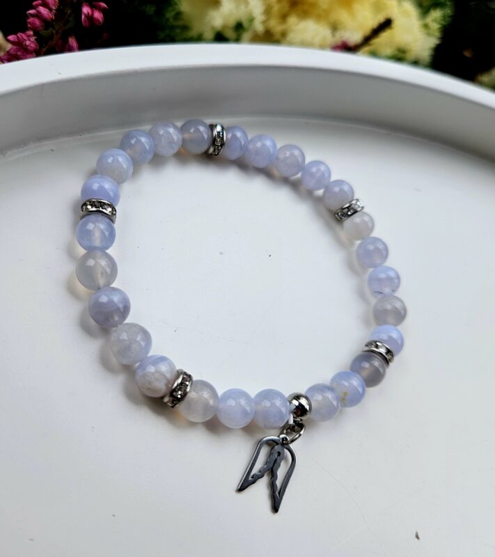 Chalcedón modrý náramok 6mm Anjelské krídla