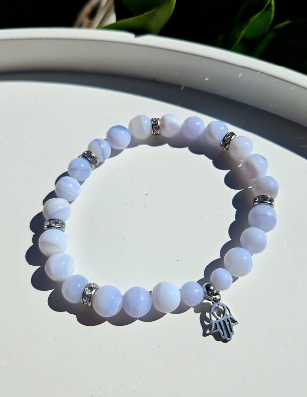 Pre zmenu veľkosti uveďte požiadavku do poznámky Chalcedón modrý náramok 8mm RUKA