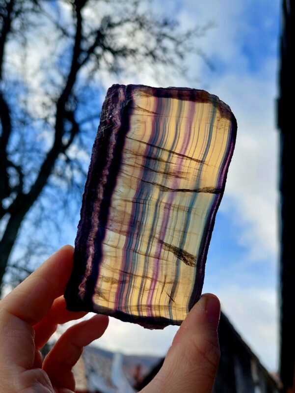 Tento výnimočný fluorit v sebe ukrýva nádherné prechody farieb – od jemnej zelenej až po hlboké fialové odtiene