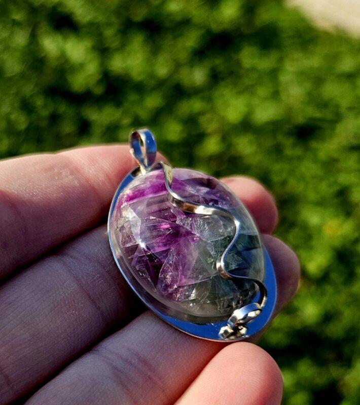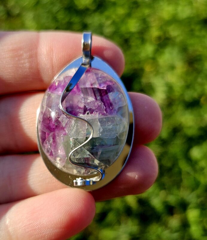 Objav krásu prírody ukrytú v tomto jedinečnom fluoritovom prívesku. Každý kúsok hrá jemnými odtieňmi fialovej a zelenej, ktoré pôsobia harmonicky a upokojujúco 💚💜