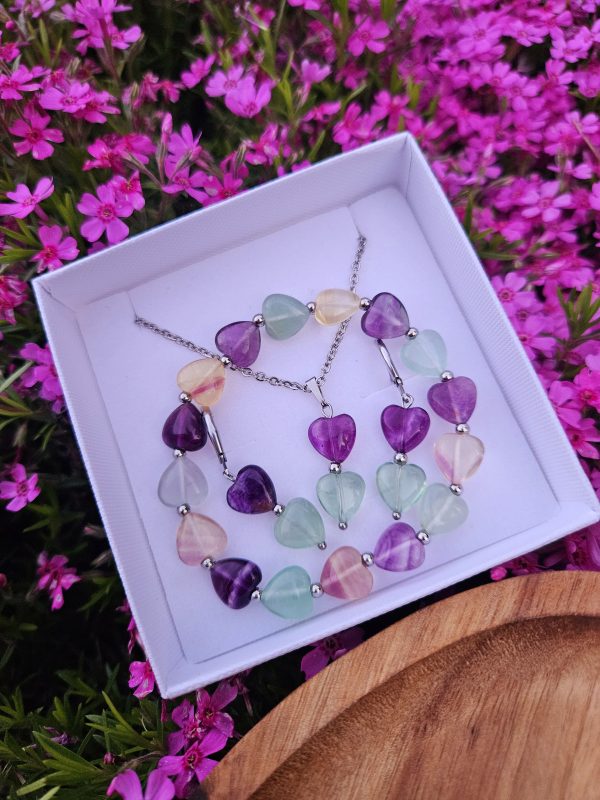 Fluorit SET (náramok, náušnice,prívesok)- SRDIEČKA