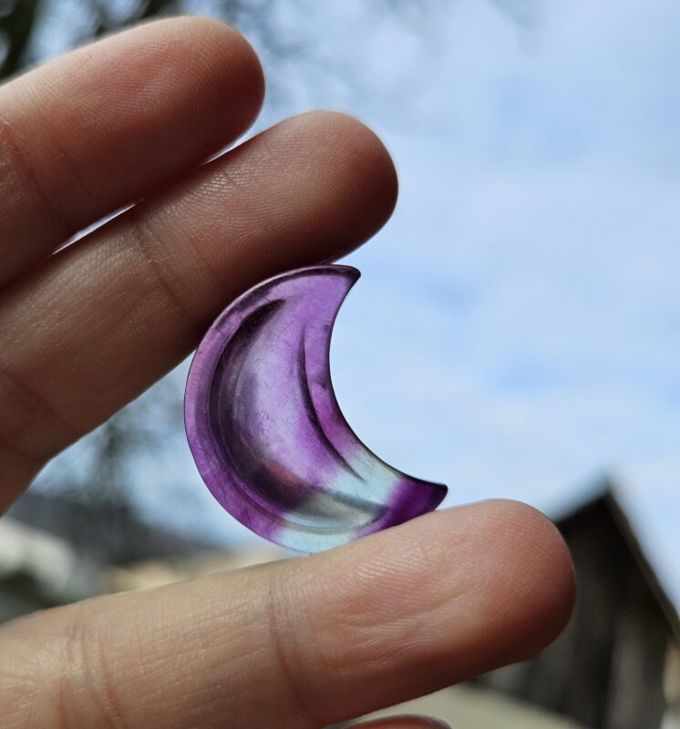 Tento výnimočný fluorit v sebe ukrýva nádherné prechody farieb – od jemnej zelenej až po hlboké fialové odtiene