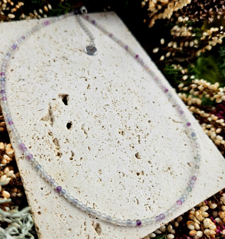 Fluorit náhrdelník 2mm fazetovaný strieborný