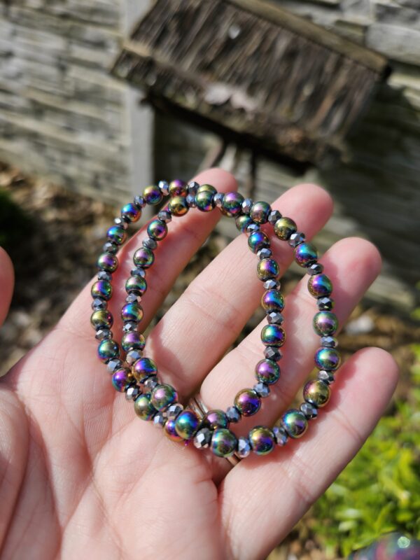 Náramok Hematit & praskaný krištáľ – 8 mm
