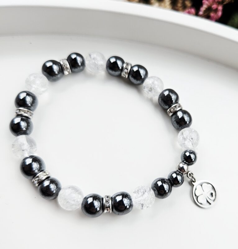Hematit + Krištáľ náramok 8mm ŠTVORLÍSTOK