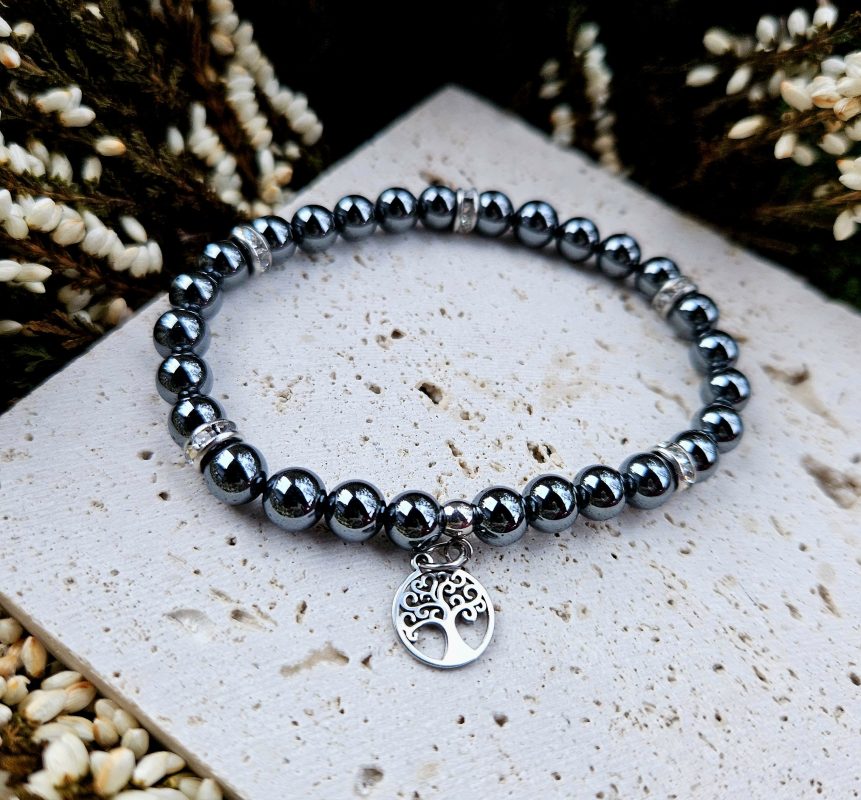 Hematit + Krištáľ náramok 8mm STROM ŽIVOTA