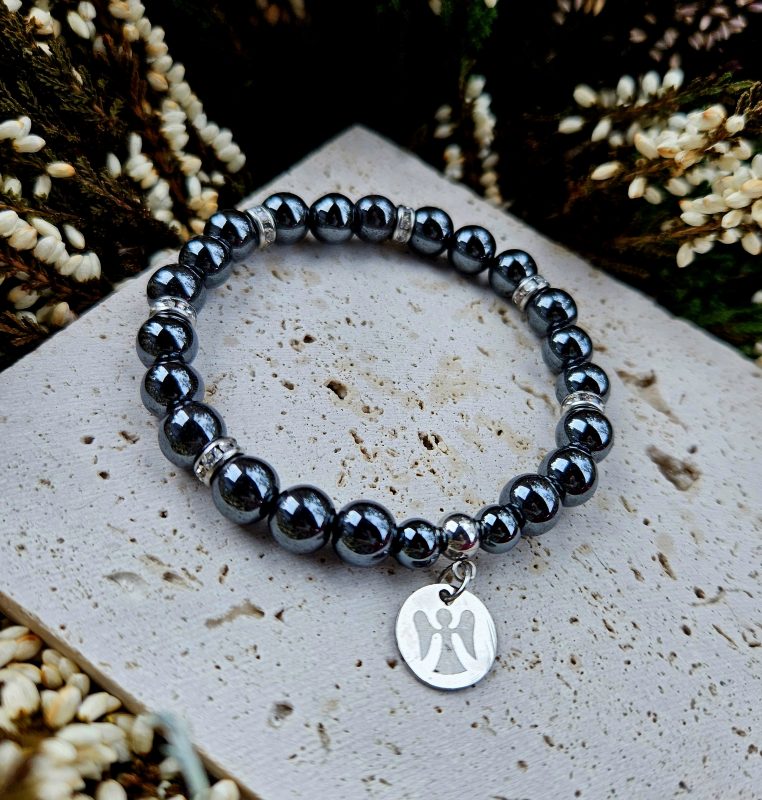 Hematit + Krištáľ náramok 8mm ANJELIK