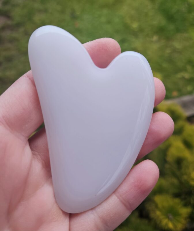 Rozmer - cca 8 x 5 cm GUA SHA Gua sha existuje v tradičnej čínskej medicíne už tisíce rokov. Tento kameň, ktorý bol zdokonalený v priebehu storočí, bol vyrobený tak, aby na pokožku pôsobil spevňujúco. Môžete ním masírovať tvár i telo. Masážou tváre s gua sha sa zbavíte prebytočných tekutín z tkanív – opuchov. Pokožka bude prekrvená a vaša pleť pružná. Navyše redukuje vrásky a pozdvihuje línie pleti. Má tiež pozitívny vplyv na psychiku a znižuje napätie v tvári.Qua sha Jadeit zelený
