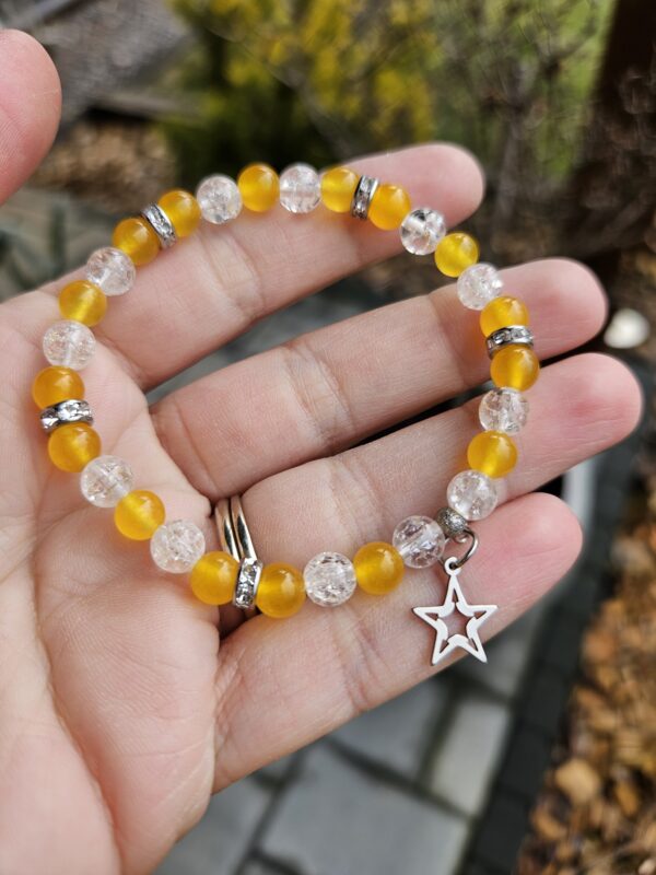 Jadeit žltý + Krištáľ náramok 6mm HVIEZDIČKA