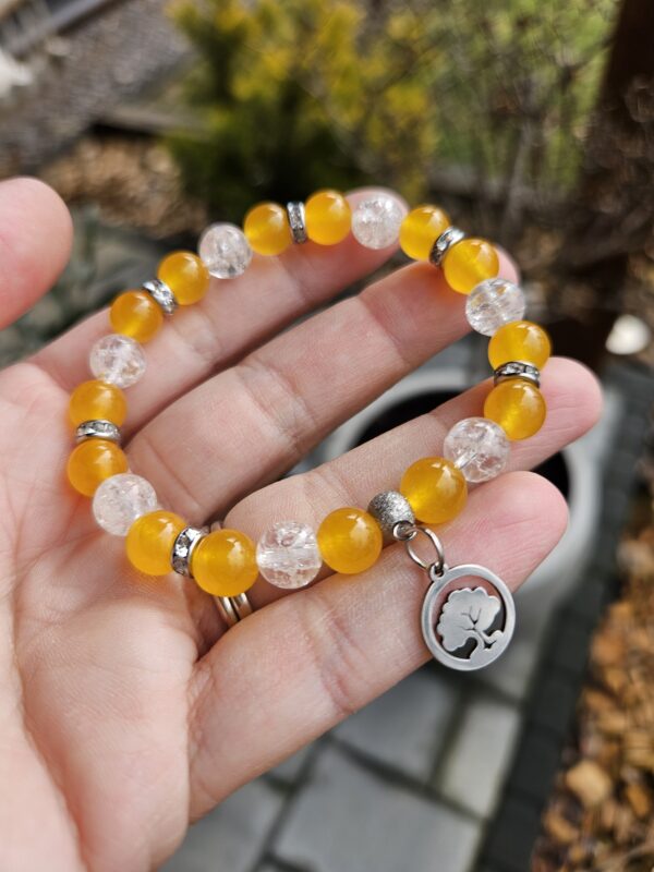 Jadeit žltý + Krištáľ náramok 8mm STROM ŽIVOTA