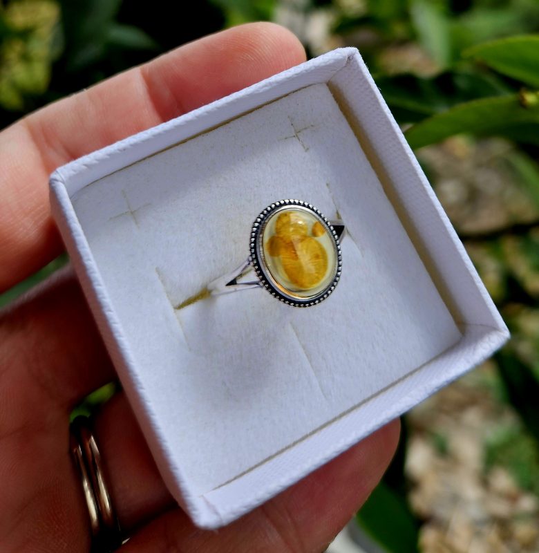 Jeho teplý medovo-zlatý odtieň v sebe nesie energiu slnka a pokoj dávnych lesov. Každý pohľad odhalí nové detaily, drobné štruktúry a prirodzené línie, ktoré robia z tohto kusu skutočný zberateľský unikát – dominantný prvok každej zbierky aj elegantnú prírodnú dekoráciu interiéru.