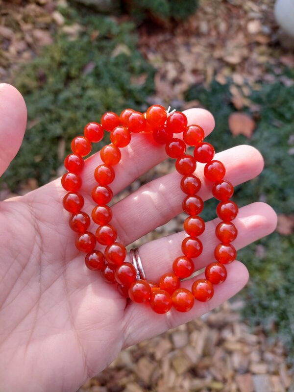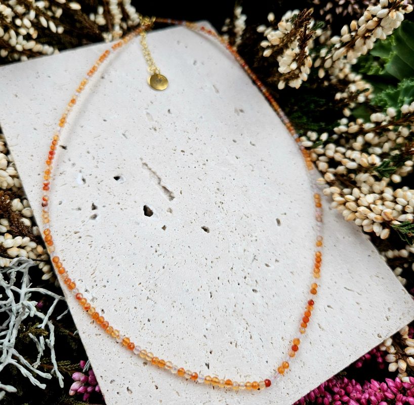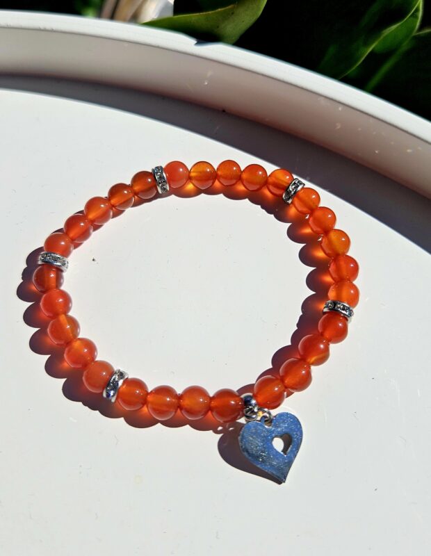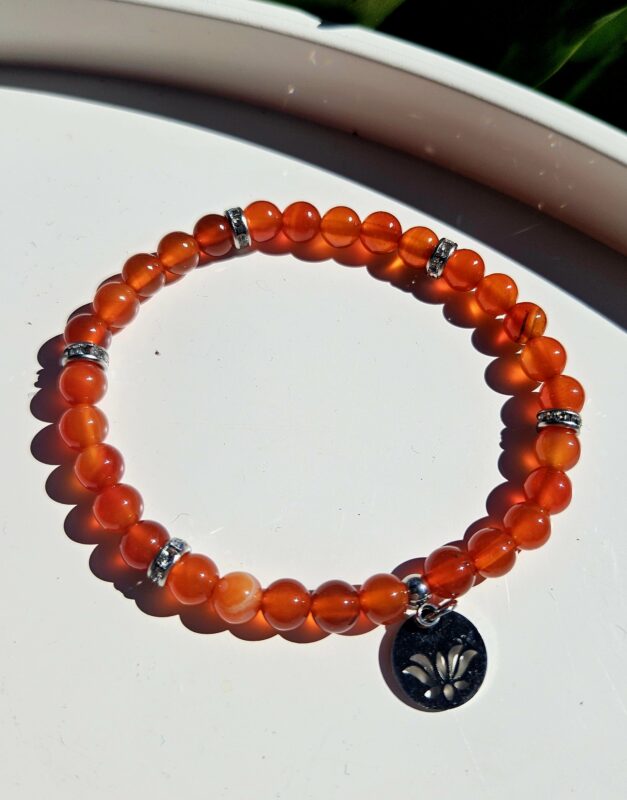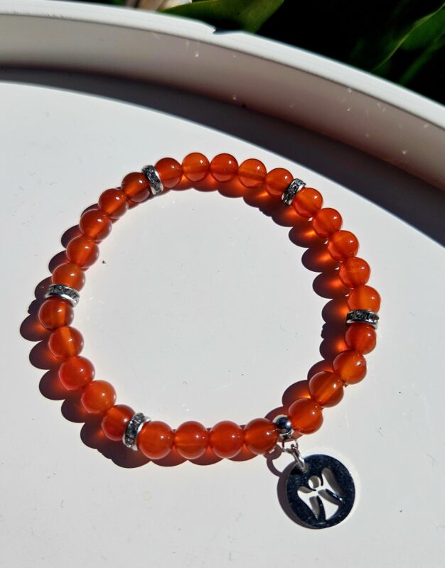 Nechaj sa očariť hrejivou energiou karneolu, kameňa vitality, odvahy a radosti zo života. Tento elegantný náramok v žiarivých oranžovo-červených tónoch rozžiari každý outfit a zároveň podporí tvoju vnútornú silu a sebavedomie.