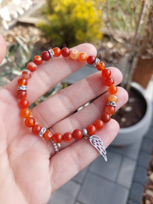 V prípade záujmu o inú veľkosť stačí napísať do poznámky. Karneol náramok 6mm ANJELSKÉ KRÍDLO
