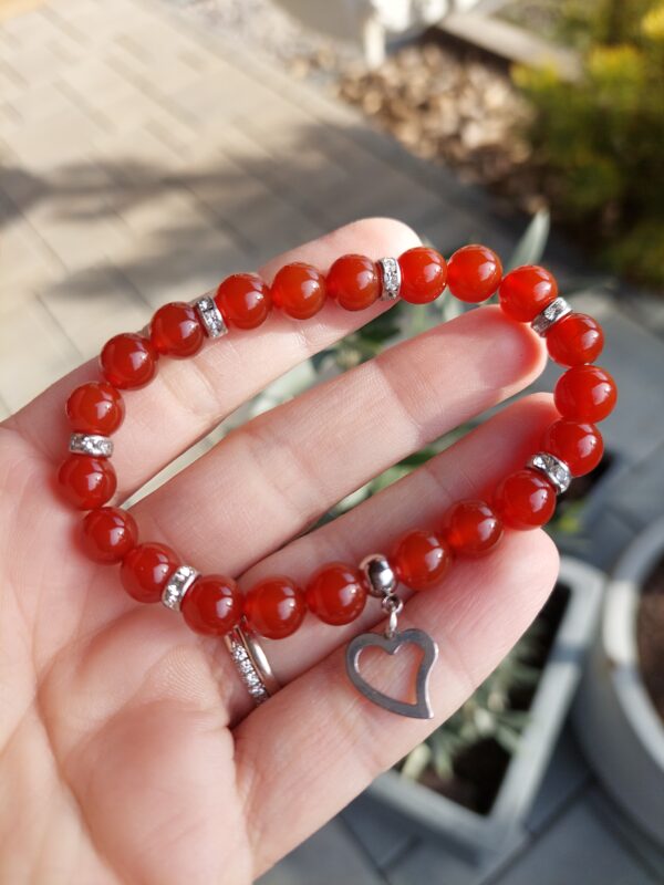 Karneol + Krištáľ náramok 8mm SRDIEČKO