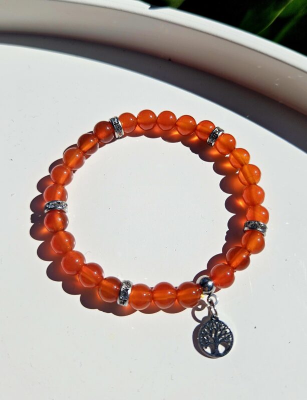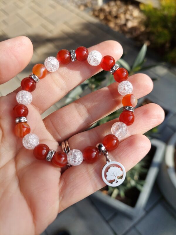 Karneol + Krištáľ náramok 8mm STROM ŽIVOTA