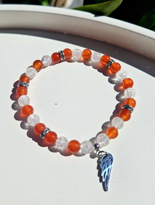 Karneol + Krištáľ náramok 6mm ANJELSKÉ KRÍDLO