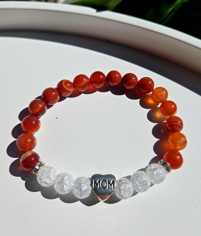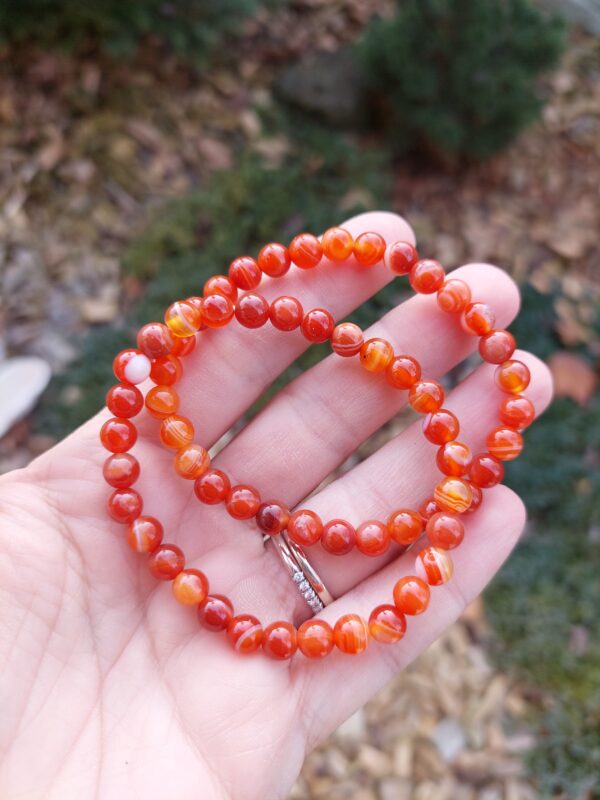Každý náramok je originál – prirodzené páskovanie a farebné prechody karneolu sa môžu mierne líšiť.
