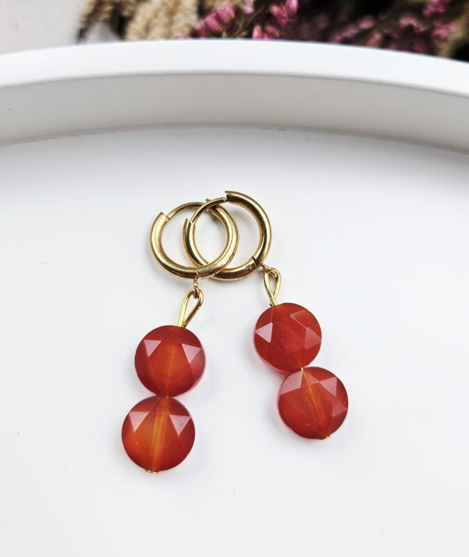 Karneol je tradične spájaný s vitalitou, odvahou a životnou energiou, preto sú náušnice nielen krásnym doplnkom, ale aj symbolickým darčekom s pozitívnym významom.
