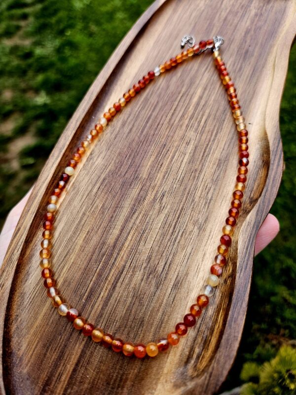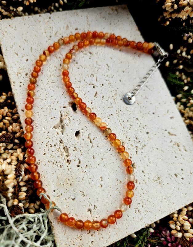Karneol je tradične považovaný za kameň vitality, odvahy a životnej energie, preto je náhrdelník nielen krásnym doplnkom, ale aj symbolickým darčekom s pozitívnym významom.