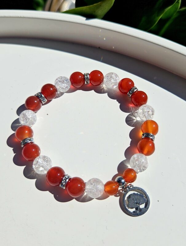 Karneol + Krištáľ náramok 8mm STROM ŽIVOTA