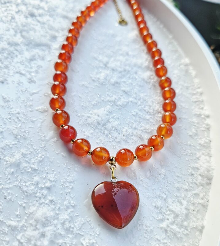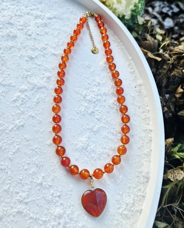 Ideálny doplnok pre ženy, ktoré chcú podporiť svoju vnútornú silu a zároveň pôsobiť elegantne a sebavedomo. Karneol náhrdelník 8mm SRDIEČKO