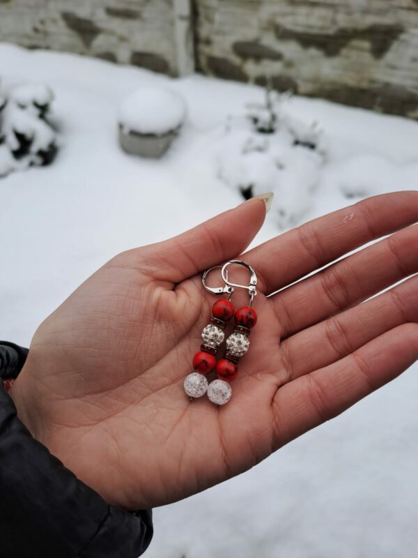 Koral červený + Krištáľ - náušnice