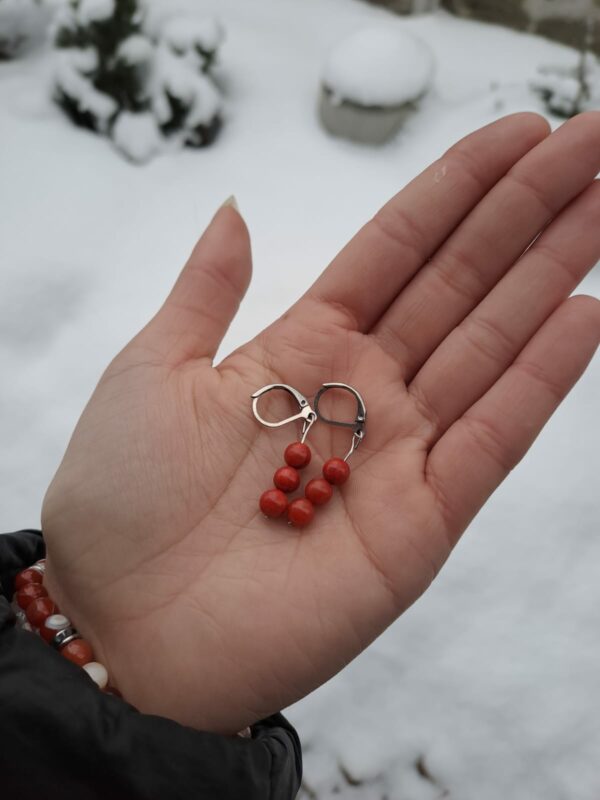 Koral červený náušnice vysiace 6mm