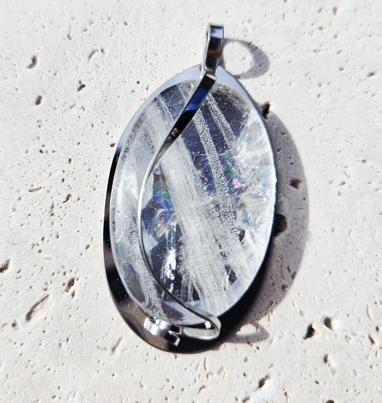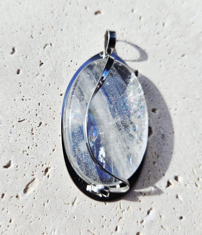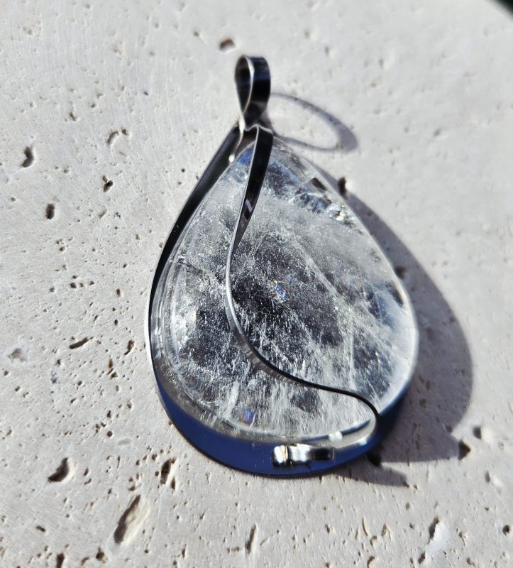 Exkluzívne leštené srdce z pravého horského krištáľu, kameňa čistoty, svetla a harmónie. Jeho bacuľatý tvar a krištáľová priehľadnosť s jemnými prírodnými kresbami vytvárajú nadčasový klenot, ktorý pôsobí noblesne a pokojne zároveň.