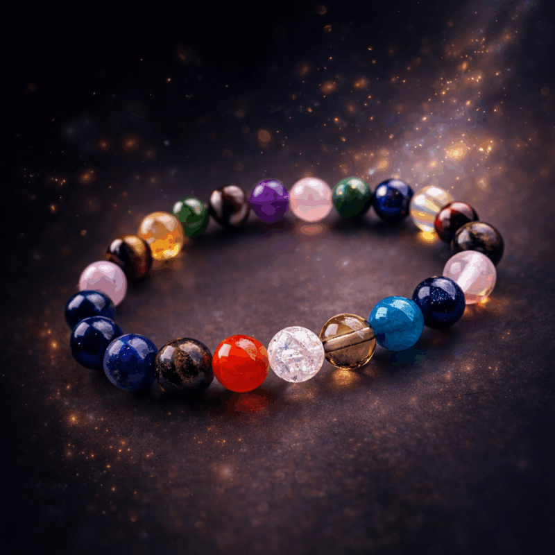 Tento výnimočný náramok je zostavený z bohatej kombinácie 22 druhov minerálov, ktoré spolu vytvárajú silné energetické pole zamerané na rovnováhu, ochranu, vnútornú silu a harmóniu tela aj mysle.