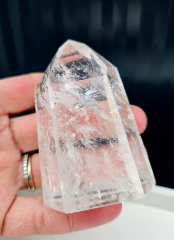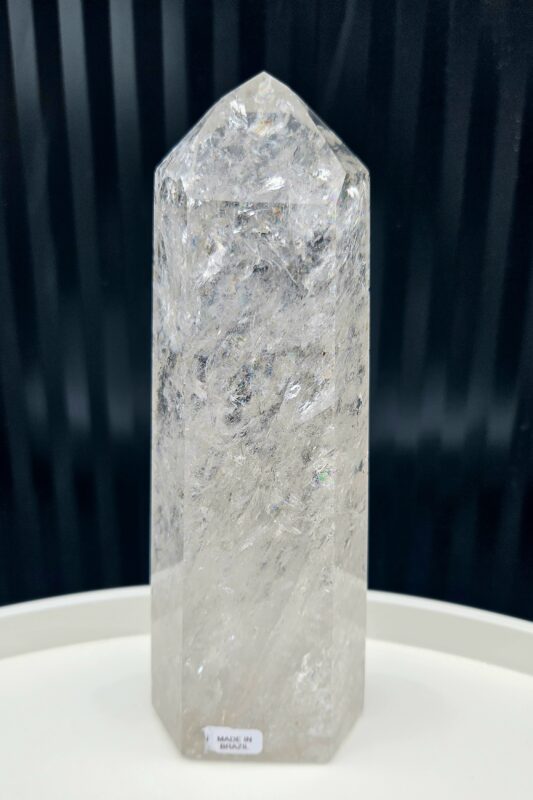 Tento krásny krištáľový obelisk zaujme svojou prirodzenou štruktúrou a jemnými dúhovými odleskami, ktoré sa objavujú pri dopade svetla