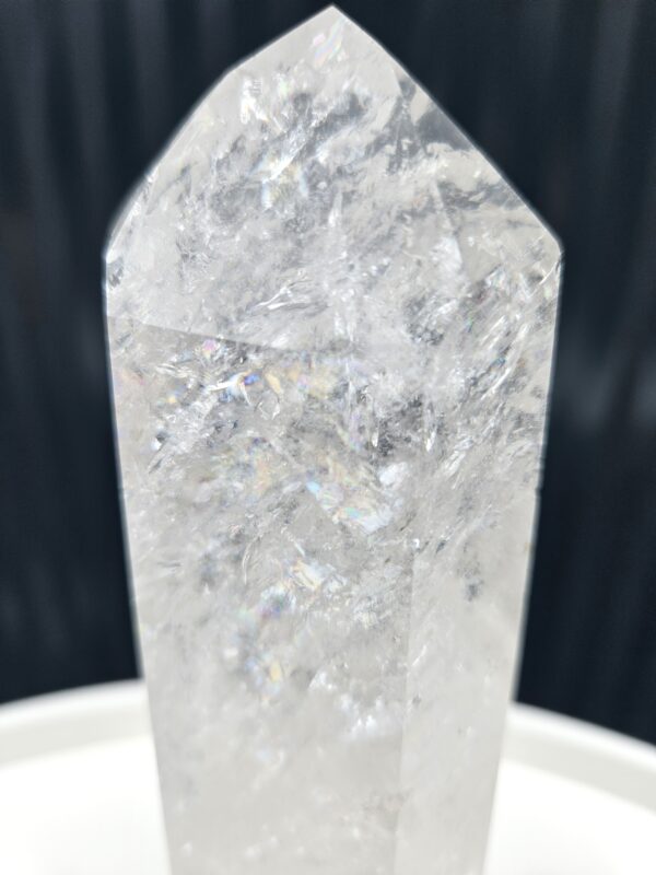 Krištáľový generátor – obelisk s jemnými dúhovými odleskami