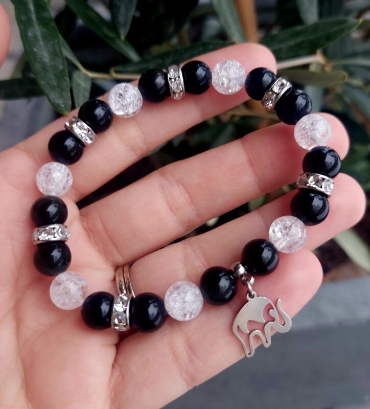 Obsidián dúhový + Krištáľ náramok 8mm Sloník