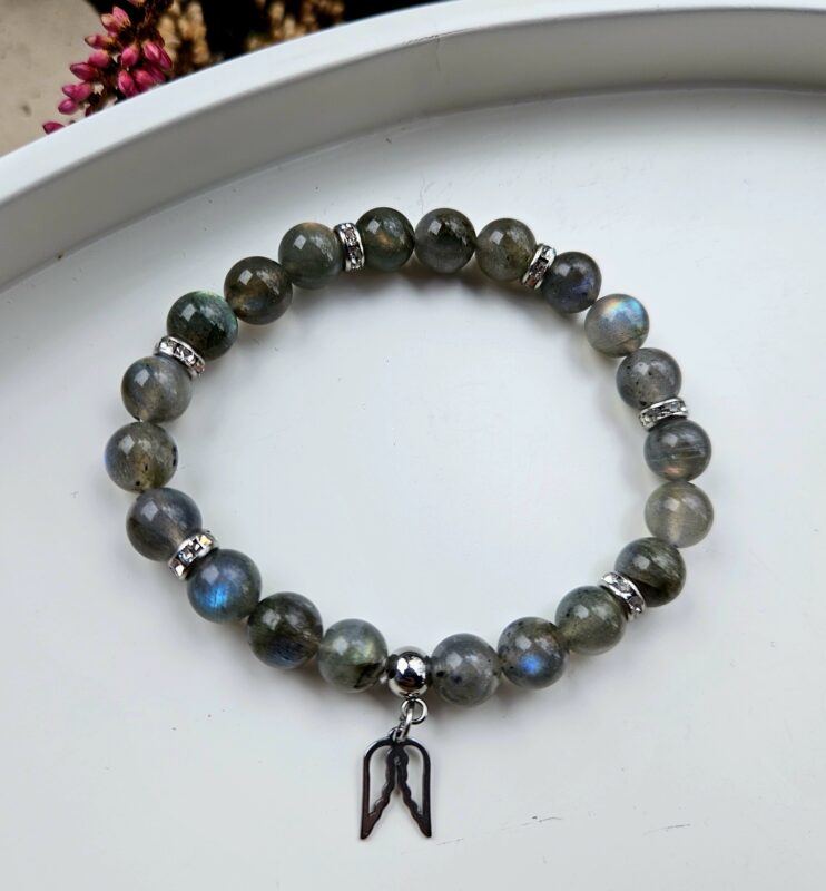 Labradorit je silný ochranný kameň intuície, transformácie a vnútornej rovnováhy. Pomáha chrániť energiu nositeľa, posilňuje sebadôveru a podporuje duchovný rast.