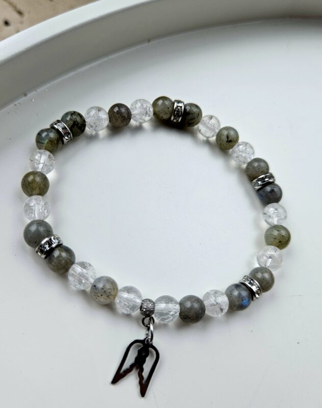 Labradorit + Krištáľ náramok 8mm AA ANJELSKÉ KRÍDLA