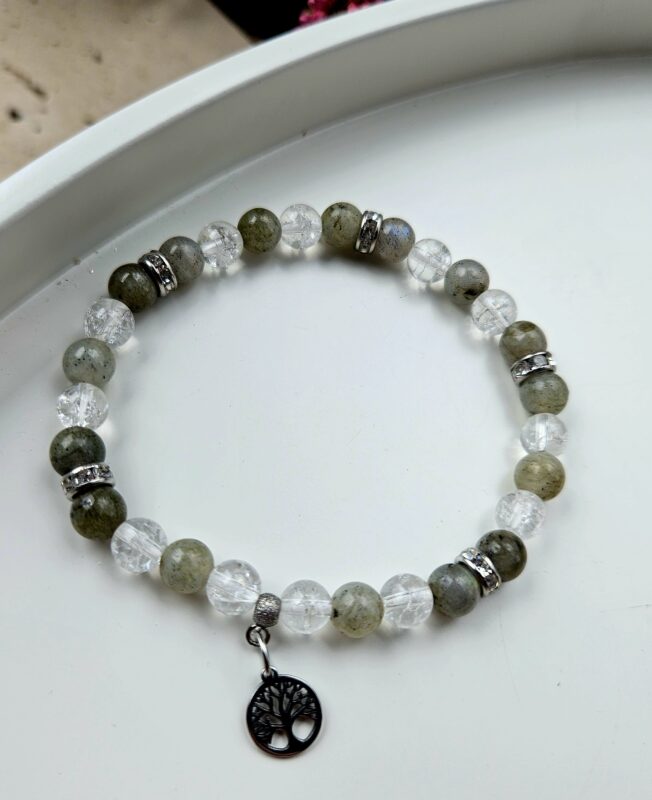 Labradorit + Krištáľ náramok 6mm STROM ŽIVOTA