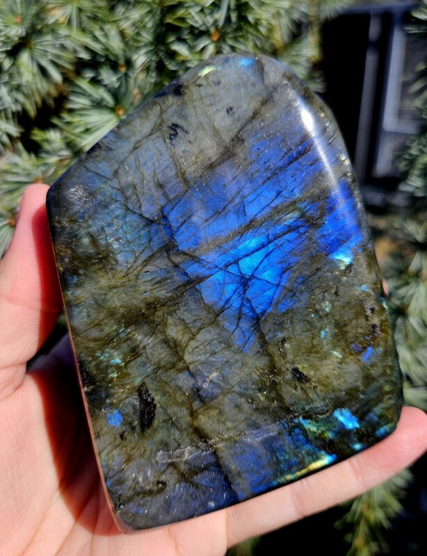 Labradorit je známy ako kameň ochrany a transformácie. Pomáha posilňovať intuíciu, chrániť auru a prinášať svetlo do období zmien. Je ideálny pre tých, ktorí hľadajú rovnováhu, silu a jedinečný prírodný šperk pre svoj domov. Labradorit Free Form 350g č.7