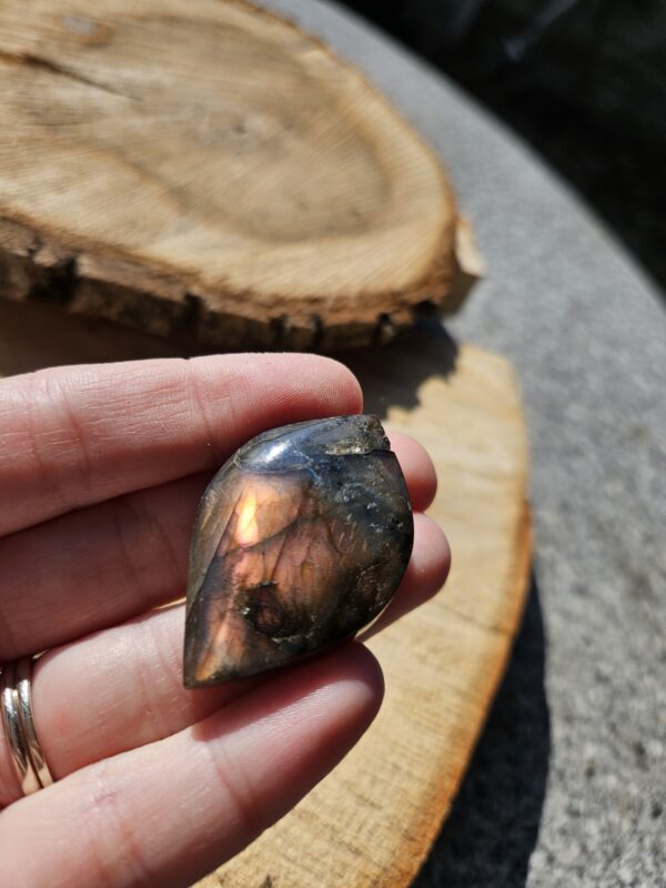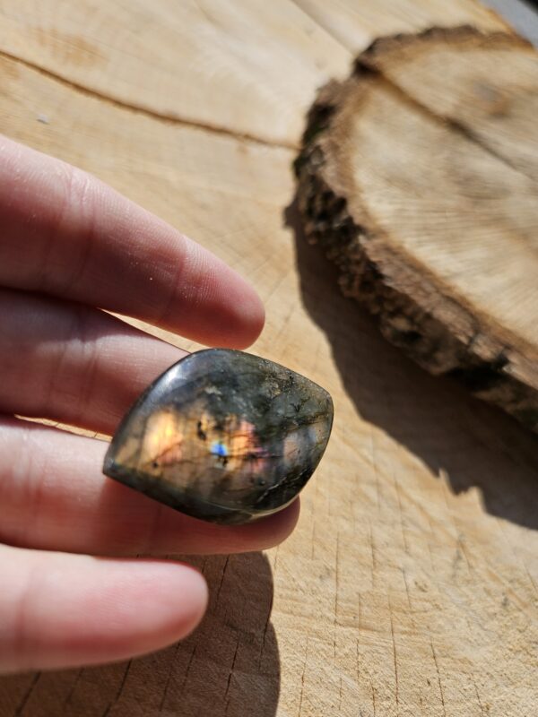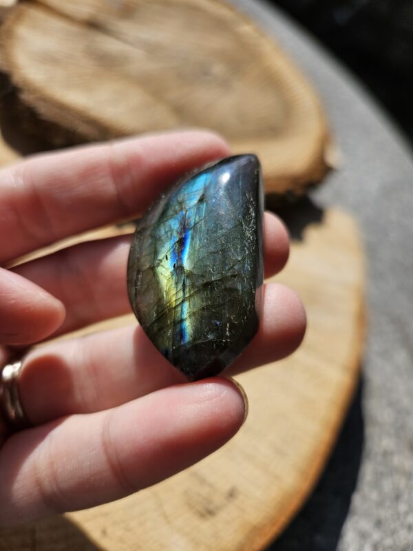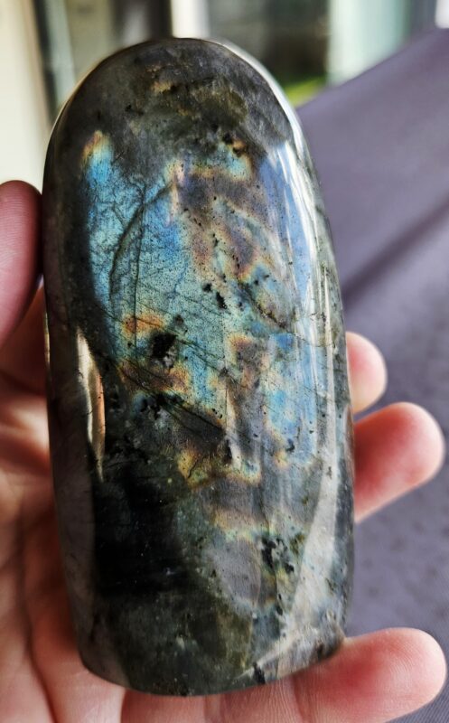 Labradorit je kameň ochrany a intuície. Pomáha odrážať negatívnu energiu, posilňuje vnútornú silu a podporuje nové začiatky. Labradorit Free Form 1020g č.5