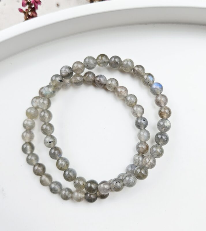 Jemný a zároveň výrazný náramok z prírodného labradoritu v podobe hladkých guľôčok s priemerom 6 mm. Každý kameň má jedinečnú kresbu a jemné modré až sivé dúhové odlesky, ktoré dodávajú šperku magický charakter.
