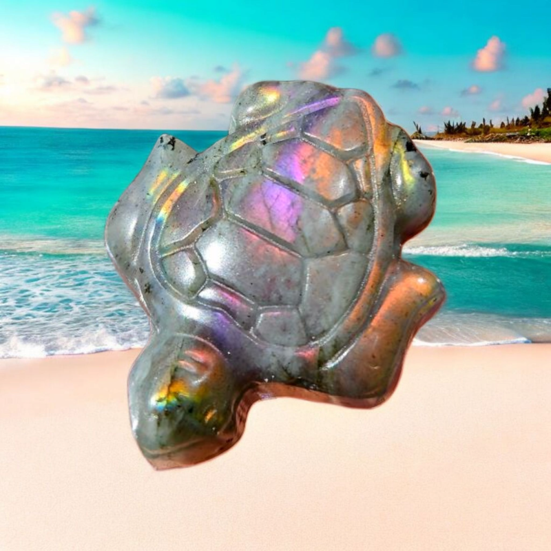 Labradorit je silný ochranný kameň, ktorý podporuje intuíciu, transformáciu a vnútornú silu. Je perfektným spoločníkom do nových začiatkov aj ako energetická ochrana priestoru. Labradorit korytnačka č.7