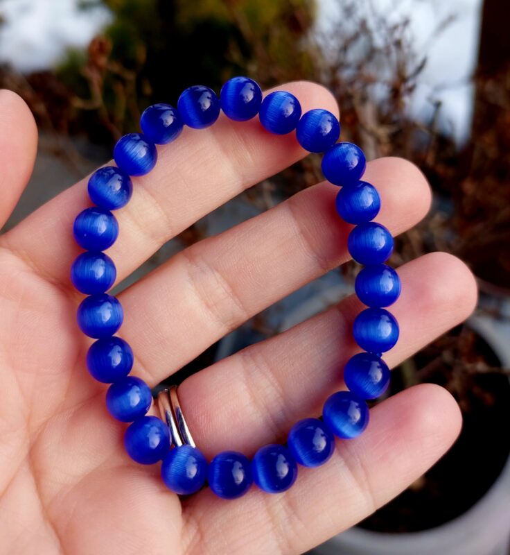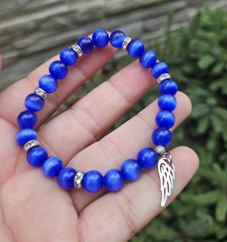 Mačacie oko tm.modré náramok 8mm Krídlo