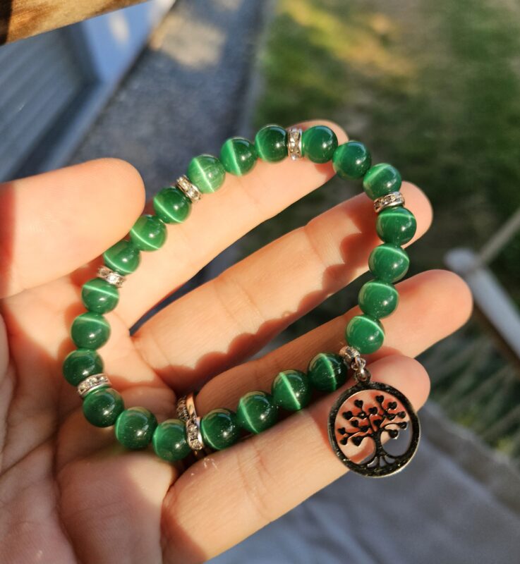 Mačacie oko zelené smaragdové – náramok 8mm Strom života