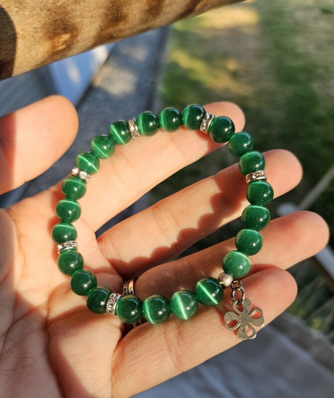 Mačacie oko zelené smaragdové – náramok 8mm Štvorlístok