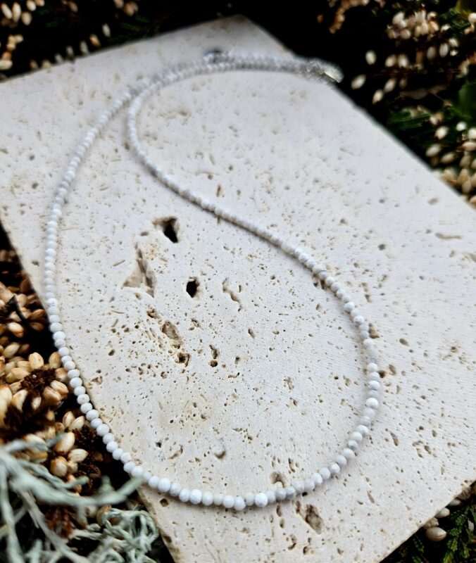 Nechajte sa obklopiť jemnou energiou čistoty a ticha, ktorú tento náhrdelník nesie – ako dotyk pokoja priamo na vašej pokožke.