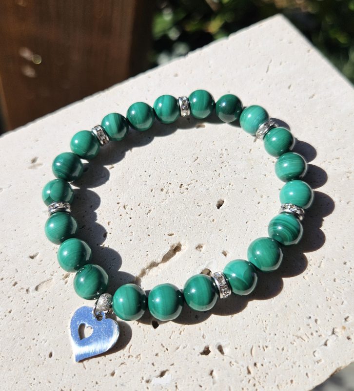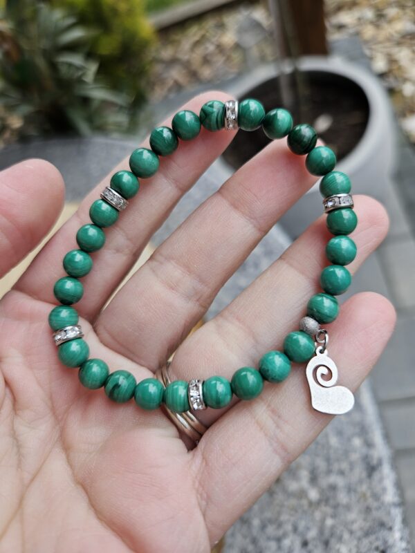 Malachit náramok 8mm Srdiečko