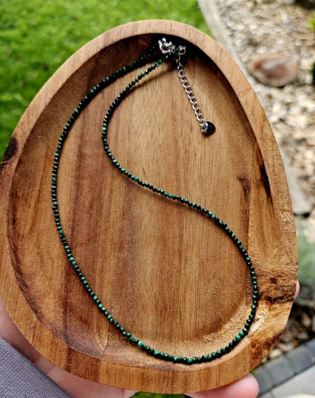 Každý kus je jedinečný – líši sa kresbou, odtieňmi aj štruktúrou. Malachit náhrdelník 2mm fazetovaný