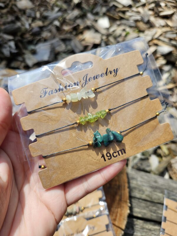 Sada 3 náramkov z lámaných minerálov na zaťahovanie č.7 Jadeit, Olivín, Malachit