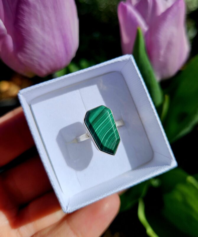 Malachit je kameň ochrany, rovnováhy a vnútornej sily. Podporuje sebavedomie, harmonizuje emócie a je obľúbený pre svoju silnú energiu aj luxusný vzhľad.